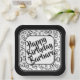 This over-the-hill pattern has a black and white random number pattern with milestone number 50 repeated in varied sizes and angles for an all-over print. There is a white square in the center for your text and a black and white frame around the rim.