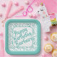 This over-the-hill pattern has a teal and white random number pattern with milestone number 50 repeated in varied sizes and angles for an all-over print. There is a white square in the center for your text and a teal and white frame around the rim.