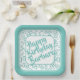 Age 50 Random Number Pattern Teal/White Paper Plates