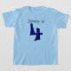 Our name and age T-shirt with gray and navy text is perfect for your childs milestone birthday party and can be worn all year. You can change the name and age on this T-shirt before ordering.