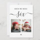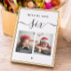 Black and white script wedding Table Number card "When we were age" with photo of groom and bride.