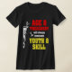 My overall review is that the T-shirt is nice, it fits true to size however the font is significantly smaller than advertised and you can't read it. The printing is unreadable and there is a strain to read it. It does not look like the advertised product. Maybe the shirt color is darker or a larger more visible font should have been used. Photos with and without flash and font is barely legible.