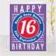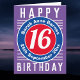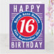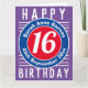 16th Birthday Card. Bright colours and bold design. Numbered birthday card. 16 years old.