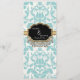 NOTE: This is a flat printed invitation, there are no raised layers or actual metal or jewels in it. This is a graphically designed image that looks quite real, but is flat. If you are DIY handy, you could easily add real jewels to this design. COLOR PALETTE: off white, aqua blue, black and gold metallic look. DESIGN COLLECTION: This is a truly elegant and sophisticated Wedding Invitation Collection with a formal modern vintage flair! Shown here in creamy white on aqua blue, the invitation has an elegant dramatic dimensional appearance. For a beautiful finishing touch select the matching invitation envelope of the same design. This is artwork designed by Audrey Jeanne Roberts created from antique vintage look worn damask patterns, a beautiful frame with diamond look "jewels" dangling from it and layered over a gilded look ribbon. There are RSVP response cards, Reception Invitations, Wedding Program, Driving instructions, Hotel Accommodation cards, postage, stickers and more available to match. If there's a product you would like to have created that isn't offered just message us!