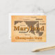 Aged antique paper Maryland state pride image including map silhouette with cities, towns and nickname.