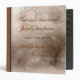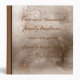 Family history themed, this design features a massive and strong aged oak tree on a hillside with the faded silhouette of a young girl sitting under the tree. Decorative flourishes complete the Vintage sepia tone design. Genealogy quote on front reads: Our most treasured family heirlooms are our sweet family memories.
