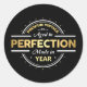 Premium vintage aged to perfection made in year XXXX, in mixed white and shades of golden yellow uppercase and script font. Arranged in a white circle adorned with yellow stars. Personalize with a birth year.