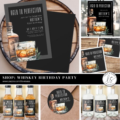 Black Aged To Perfection Whiskey Men's BirthdayDesigned by Jo P.