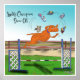 A dog jumps over a fence while juggling quail. "Agility Champion Show Off."