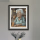 Bar art. An old lady drinking a beer and shot at a bar. Funny tavern saloon humor art.