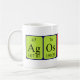 Ágoston spelled out as Ag Os T O N (Silver Osmium Tritium Oxygen Nitrogen) on a mug for the scientist in you.