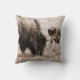 Agressive bison and black wolf throw pillow