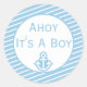 Perfectly preppy and chic customizable seersucker striped Ahoy It's A Boy with anchor sticker