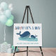 Welcome easel sign - perfect for baby shower or sip and see party. The design has a mommy and baby whale happily swimming in the ocean. It is lettered with Ahoy! it's a boy, decorated with lifebuoy and captains telescope. The personalized text is easy to edit for your occasion.