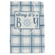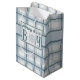 Create a personalized gift bag that's perfect for baby showers honoring moms-to-be of baby boys. This gift bag has a fun nautical theme with a blue and cream plaid pattern and the slogan "Ahoy it's a boy" on the front. On the reverse side is a spot to add the recipient's name.