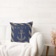 Ahoy! Nautical Anchor Navy Blue & Burlap Stripes Throw Pillow