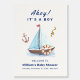 Ahoy! it'a boy, Nautical baby shower theme, celebrate upcoming baby shower with our cute modern watercolor sailboat sailing on the ocean, anchor, rope and lifesaver rubber ring in beige color. You can personalize your own text and color via "personalize this design".