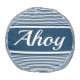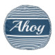 Ahoy text design with navy blue and white stripes decoration