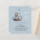 For a baby shower celebrating a baby boy. A blue gray background, a sailor teddy bear boy. Personalize and add the name of the mom to-be and party details. Text: Ahoy. It's a Boy!