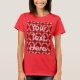 This is a red and pink pattern custom text women's t-shirt. You can add your text to the t-shirt. The design features a red and pink seamless pattern in an expressionist and minimalist style. The poster has artistic flair. The red and pink pattern was created with artificial intelligence art. The words Your Text Here show what text might look like on the t-shirt. The text is in a light pink color. The text is on both the front and the back of the t-shirt. Click the Personalize button to add your text to the t-shirt.