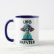 Alien and UFO graphic for those into UFOlogy. A cute alien being beamed down from a UFO.