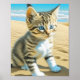 AI Gray Tabby Kitten Playing on a Sandy Beach Poster