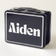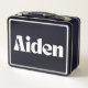 Constructed from high-quality metal, this lunchbox is built to last, making it an ideal choice for a busy lifestyle. The sturdy construction can withstand the rigors of daily use, while the smooth finish and modern design elevate its overall appeal. The name Aiden is prominently displayed in a contemporary font that adds a touch of sophistication and personalization, ensuring this lunchbox is as unique as its owner. Its retro-inspired charm, combined with a modern twist, makes it a must-have for anyone who loves stylish yet functional school supplies or office accessories.