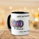 Here's a cute coffee mug for Mom for Mother's Day. You can also change the top and bottom text so that it is an appropriate gift for her birthday, or any other special occasion. The text printed on two sides says "Ain't no HOOD like motherhood", with HOOD being rendered in a pink, blue, gold stylized leopard animal print. Cute!
