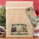 The best parties are camping in the woods! This funny design shows bears, elk, squirrels, rabbits and other animals partying, smoking, drinking beers, and roasting marshmallows around a camp fire.