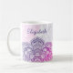 The Aion Mandala 11 oz. Personalized Mug with its jewel-like gradient of vivid magenta and royal purple, adds a mystical touch to your morning routine, or any time you need that sustaining cup of coffee, tea, or hot chocolate. Would also make a thoughtful gift for your favorite yoga teacher. Available in a 15 oz. version as well.