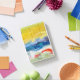 I was super excited when I got my cover in. It is attached by a magnet across the edge. I don’t think it will be very protective but it is very cute. I’m going to keep my iPad in a sleeve and use this face cover while I have it out. It folds to create a tilt for better viewing and to keep the iPad at a slight angle for typing. The colors are bright and it is fun. I’ve really enjoyed it. The personalization looks like amazing. It is the same color as the picture and is the same brightness. Well done! Very nice.