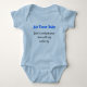 I love this onesie, it's adorable! The material is amazing so soft and the color is a perfect sky blue. When my daughter-in asked me to help with her Baby Shower, I was thrilled. It was co-ed & the theme was Cookie Monster. I had no idea that the whole world was after that big blue Monster. Thank goodness for Zazzle, I got most of the party supplies here. Then I found this onesie! They made my customization so easy. The colors are awesome. I wrote the word "Loved" across the bottom of the Cookie Monster in red letters when I was putting it together. I saw the preview & liked it. But to see it in person, OH, it was fantastic, they do exceptional work! I am so glad that I found this onesie/bodysuit. The production time and shipping were exactly what I was told, which made it easy to plan the party. Packaging was nice as well. If you are looking at this product, look no further, I highly recommend it! I'm certain that I'll be back to "design" whatever my new Grandson "needs.". The printing on the onesie/bodysuit is crisp, and clean. With perfect colors that blend well with the blue background of the basic material. We are so happy with how it came out.