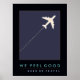 A travel inspired idea. Graphic white airplane with dotted line, with the text 'we feel good when we Travel'