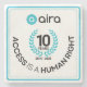 Celebrate a decade of innovation and accessibility with this Aira 10-Year Anniversary Coaster! This high-quality coaster features a sleek, modern design with the Aira logo, a 10 Years (2015-2025) commemorative wreath, and the impactful message "ACCESS IS A HUMAN RIGHT" curved around the central emblem. The clean, minimalist design is framed by a soft blue border, giving it a polished look.