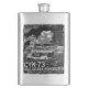 The product is a good size and came exactly as it was pictured. The lid is not attached to the flask, which could be dangerous on drunken nights... The print came out surprisingly well and looks very sharp. Would definitely recommend.