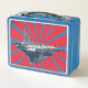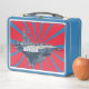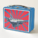 This is a standard metal lunchbox that appears to work just fine. We designed this box ourselves with an uploaded photo and custom text on the front and back. It looks absolutely beautiful except the front of the lunchbox is not centered like it shows in the photo. The print borders don't align with the inset flat part of the box where the preview photo online showed it perfectly centered in there. The back looks nice and centered though.