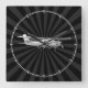 Aircraft Cessna Silhouette Flying Sunburst Decor Square Wall Clock