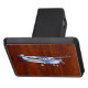 Aircraft Classic Cessna Silhouette Flying on mahogany style for any aviation enthusiast, customize this with text if you wish. The Cessna airplane is designed to make it look like a silver chrome applique on a mahogany wood grain style print background.