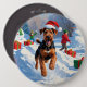 A heartwarming holiday illustration featuring a cheerful dog playing in the snow, wearing a Santa hat and surrounded by colorful gift boxes. In the background, children build a snowman beside a snow-covered Christmas tree, creating a joyful winter wonderland. Perfect for spreading holiday cheer and capturing the magic of Christmas.
