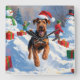 Airedale Christmas Festive Snow Scene Square Wall Clock