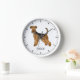 Destei's original cartoon illustration of an adorable Airedale Terrier breed dog. The clock face is made of simple modern lines. There is also a personalizable text area for a name or other custom text.