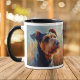 This bright and colorful mug celebrates the Airedale Terrier dog! Two sides of the mug have a beautiful portrait of an Airedale against an autumn field. Predominant colors include orange, gold, blue, and black. At the center is script that says Airedale Terrier, but you may change it or even personalize it, if you wish.