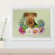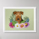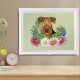 Airedale Terrier Dog With Colorful Flowers Green Framed Art