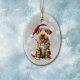 Airedale Terrier Dog Wrapped in Christmas Lights Ceramic Ornament
