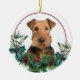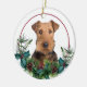 Airedale Terrier Evergreen Berry Wreath Ceramic Ornament