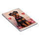 featuring Dog sitting gracefully among pink and red roses, surrounded by pastel hearts. With its clean, modern aesthetic and soft pink tones, this design is perfect for spreading warmth and affection on Valentine's Day.