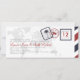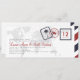 Customize this vintage-inspired airline boarding pass and announce your wedding date in a fun and unique way! Shown in tones of Navy and Dark Red. A mix of a typewriter fonts and calligraphy fonts for a true vintage feel.