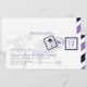 Customize this vintage-inspired airline boarding pass and announce your wedding date in a fun and unique way! Shown in tones of Navy and Medium Purple. A mix of a typewriter fonts and calligraphy fonts for a true vintage feel.