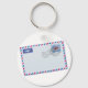 This design is a familiar looking airmail envelope. It has the airmail sticker in the tiop left and a stamp top right. This airmail envelope design looks great on this Keychain