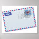 This design is a familiar looking airmail envelope. It has the airmail sticker in the tiop left and a stamp top right. This airmail envelope design looks great on this Poster